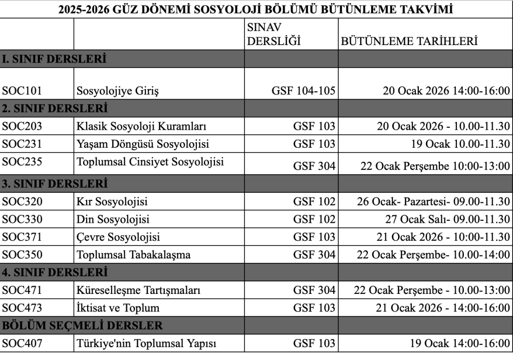 You can reach the 2025-2026 fall semester make-up exam schedule of the Sociology Department here.
