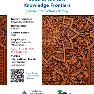 The Faculty of Humanities and Social Sciences is proud to announce the launch of its new event series, "State of the Arts: Knowledge Frontiers." The inaugural session will convene on April 17, 2026, at 19:00 (UTC+3), focusing on the theme of "Global Intellectual History." This series serves as a platform where distinguished scholars conducting cutting-edge research across various branches of human thought engage in discipline-specific discourse. Each session is designed to foster academic exchange under the moderation of a colleague from Yeditepe University. Our first event will be moderated by Sarp Kurgan, an esteemed faculty member of the Department of History.