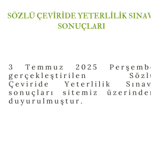 Sözlü Çeviride Yeterlilik Sınavı Sonuçları